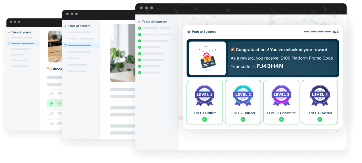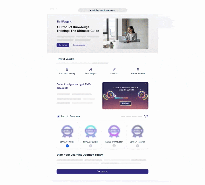 Strategic placement of mini-courses across your dashboard. Once badges are collected, you can provide tangible perks (e.g., AI credits) or grant access to exclusive features.